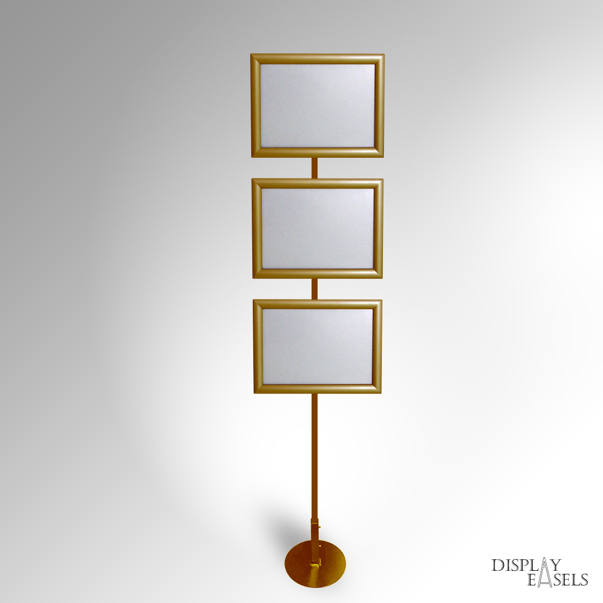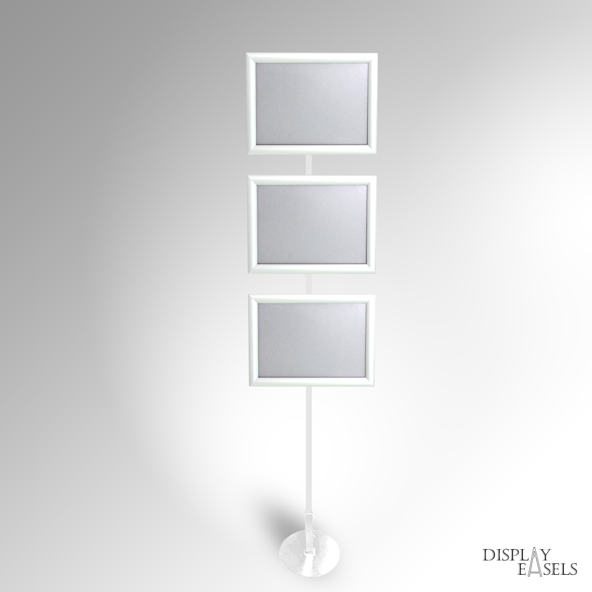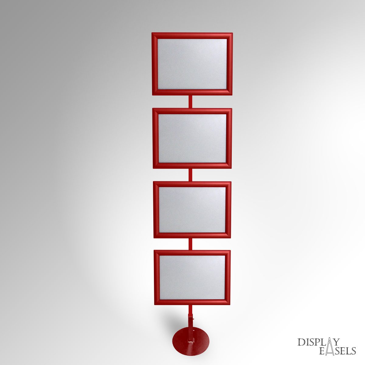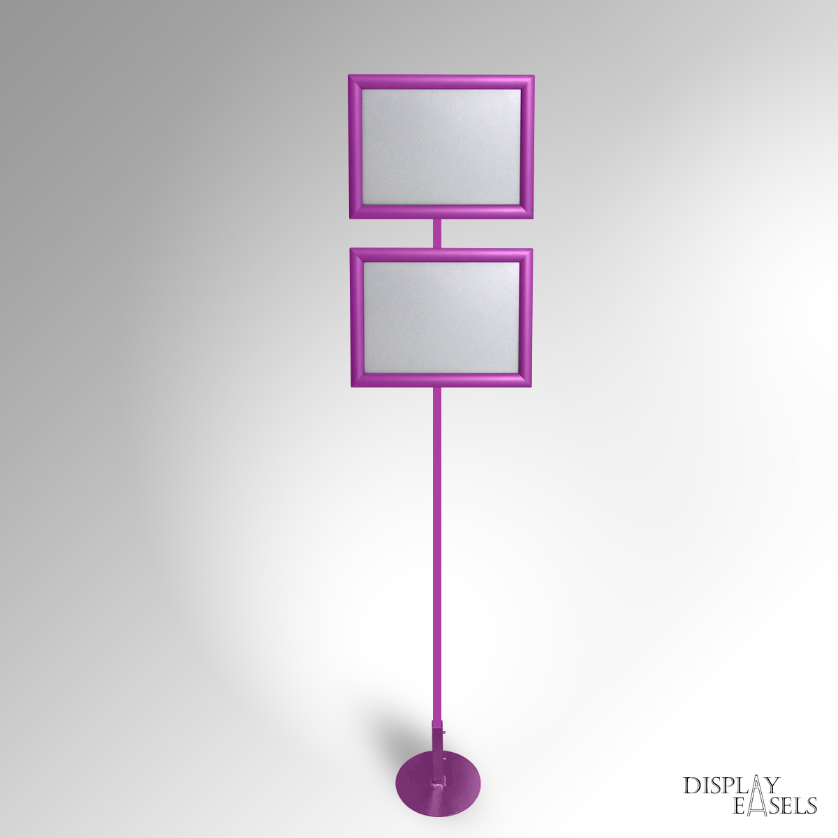 Floor Standing A4 Sign Stand is ideal for expos & corporate events indoor & outdoor use. A4 Click Snap Frames mounted on a durable, heavy-duty square tubular steel display stand. The Signage Stand can have 1 to 4 Poster Frames in a single-column display. Click Snap Frames can mount posters quickly with front-loading. Each poster frame also has an Anti-Glare PVC Film that helps protect any materials from dust or water damage. Very popular for Expo Exhibition & Info Points. Manually rotate frames between Portrait & Landscape orientation as required. Remove the poster frames, and use the metal stand to hang framed or unframed Artwork using the same Frame Hanging Fixtures. Available in Custom colours. Stock colours: SILVER, BLACK, WHITE, GOLD, BROWN, RED, PINK.