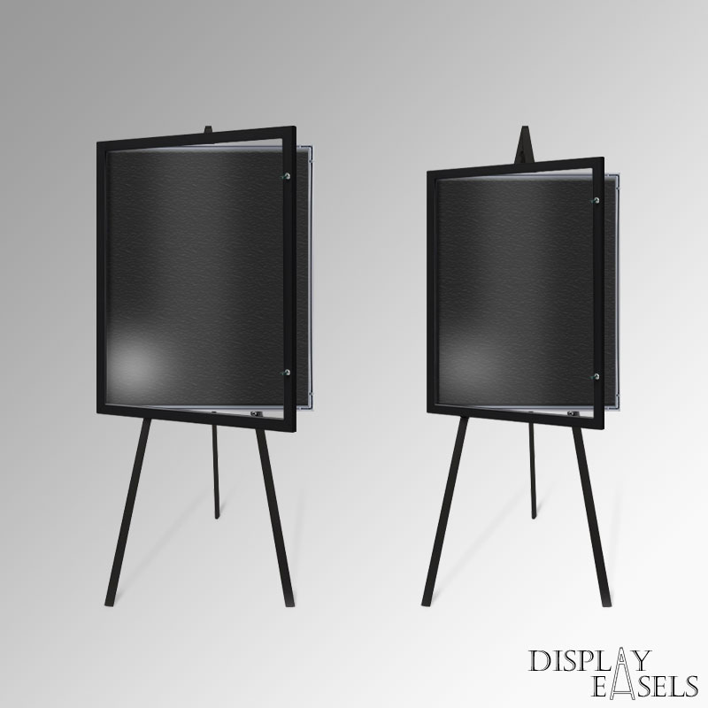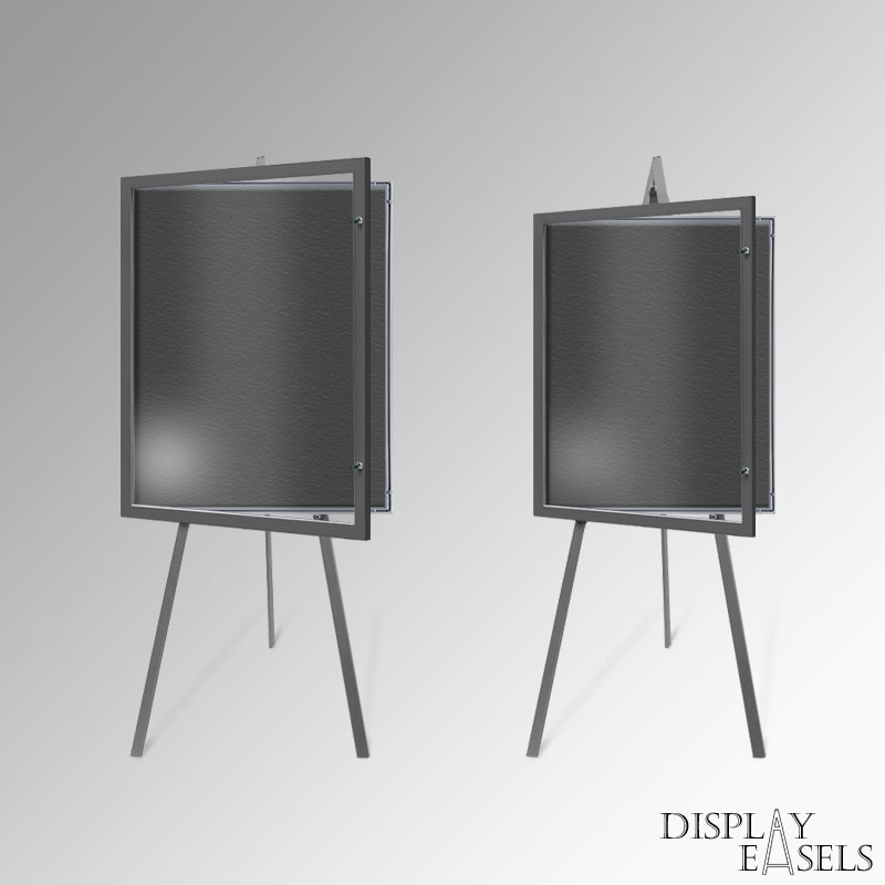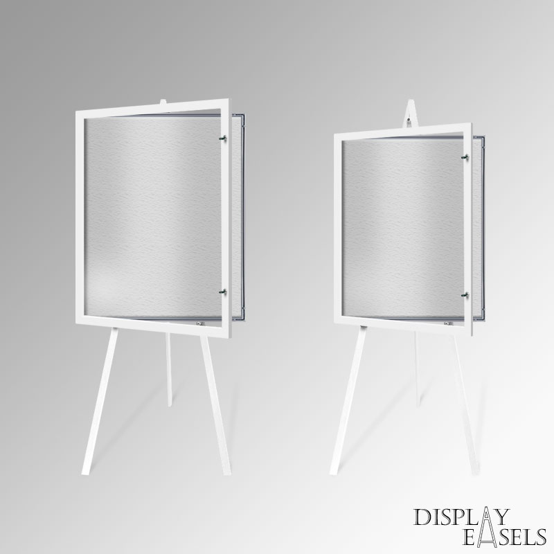 Metal easel with case stock colours BLACK, WHITE, SILVER, BROWN. No assembly is required. Greco easel legs fold flat into a single length.